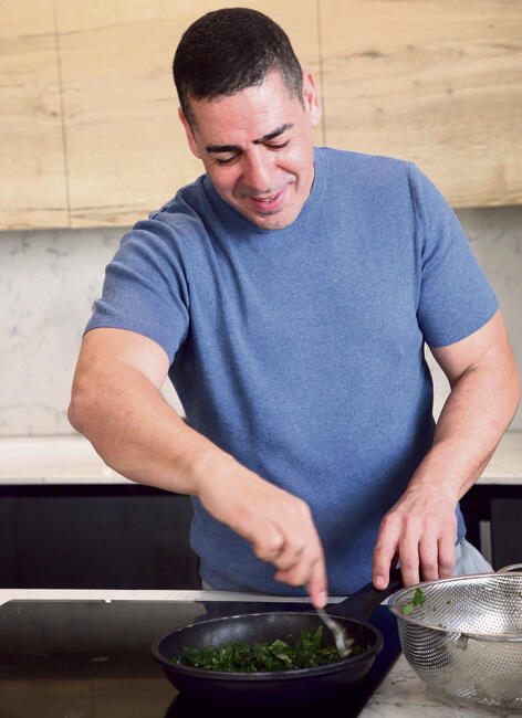 1. לטגן במחבת או סיר רחב את השום והפלפל עם שמן זית כדקה וחצי.