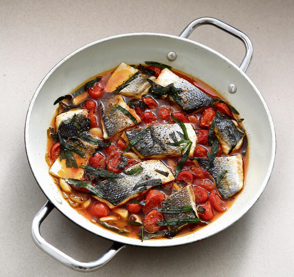 דג ברוטב עגבניות שרי וטרגון