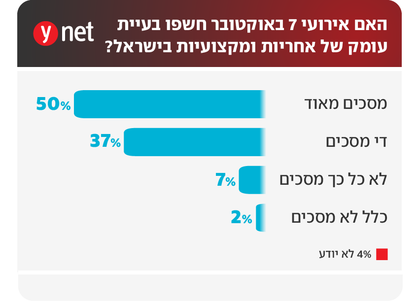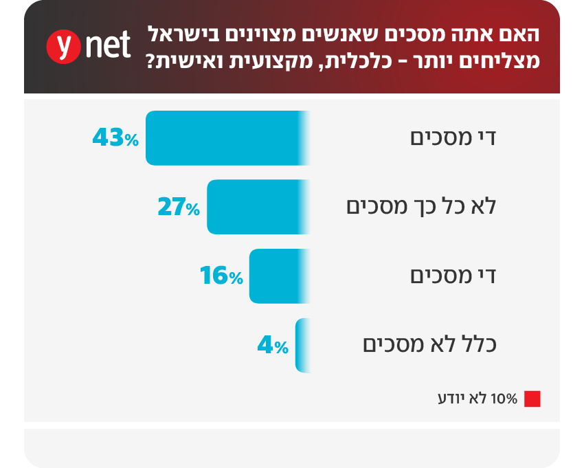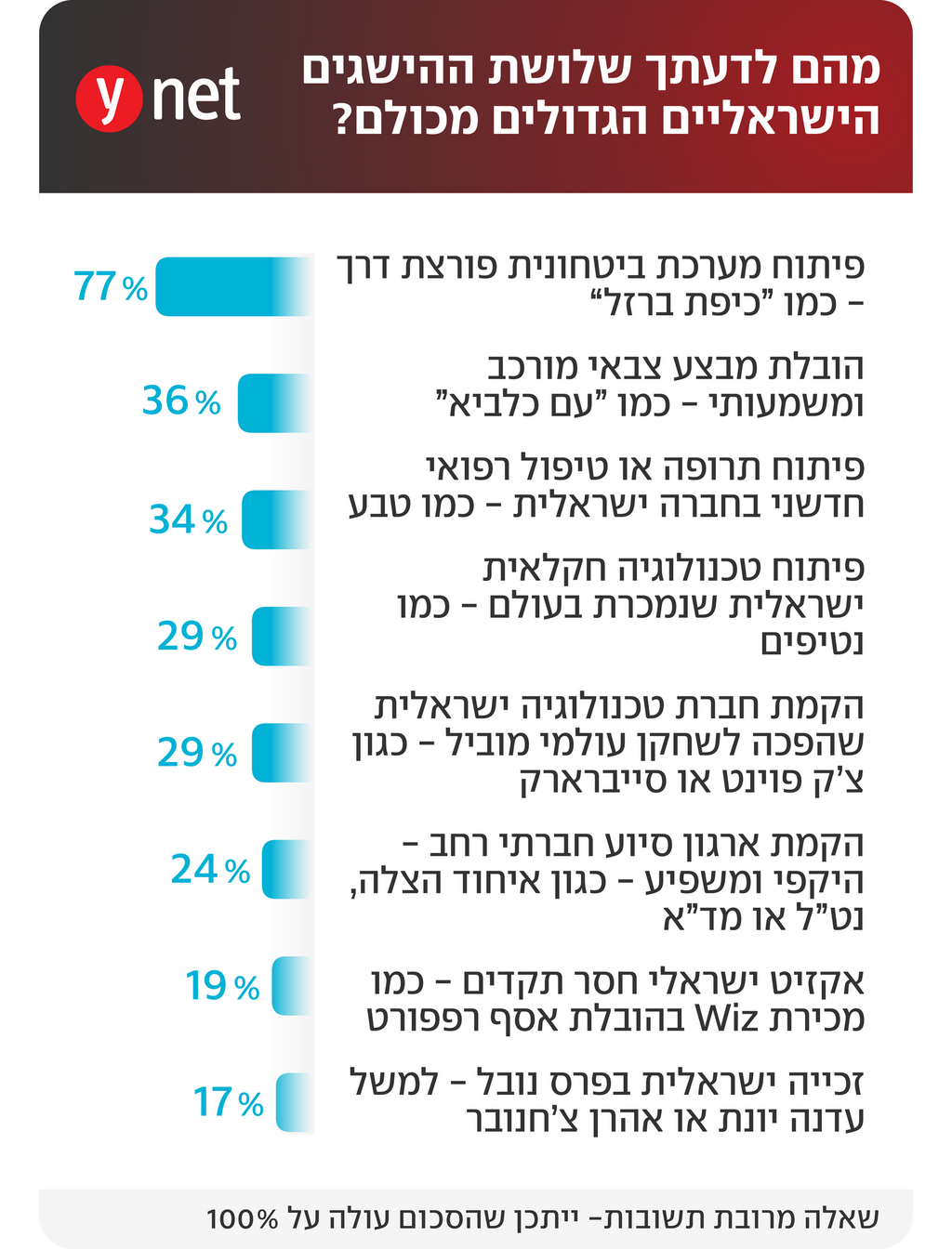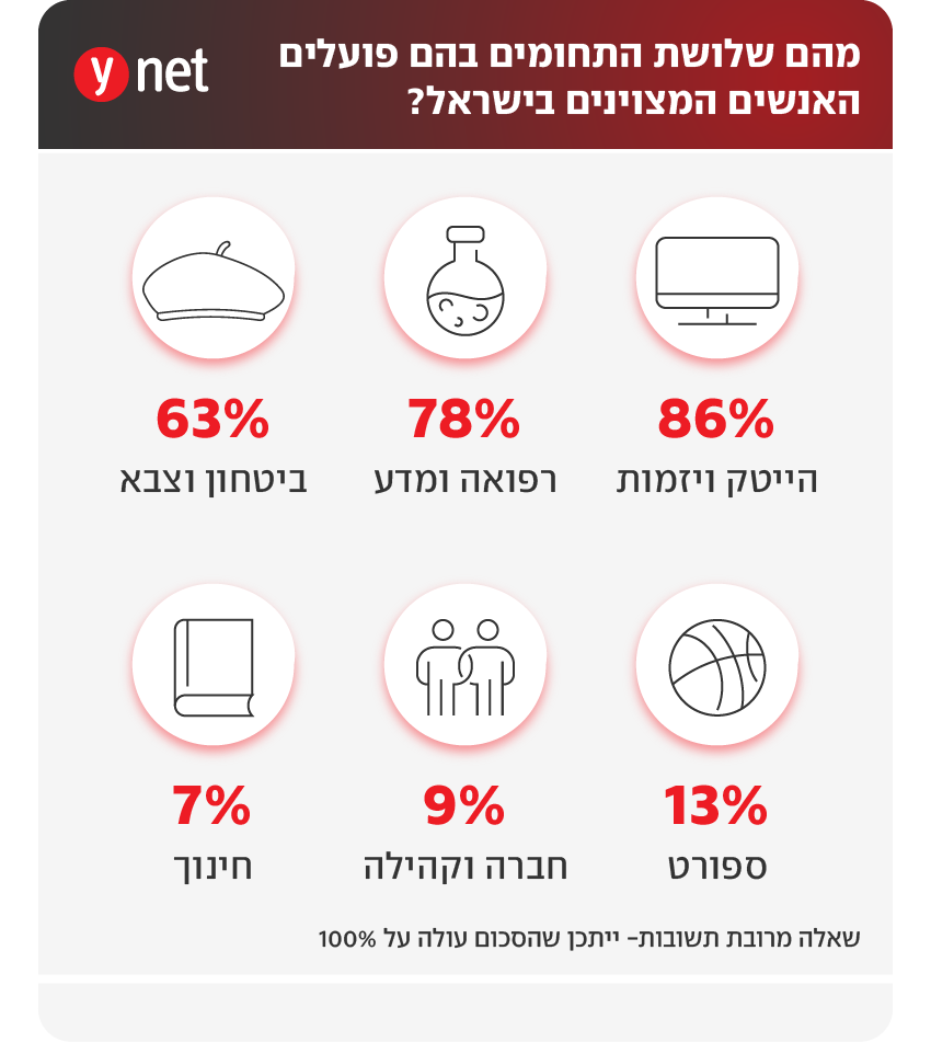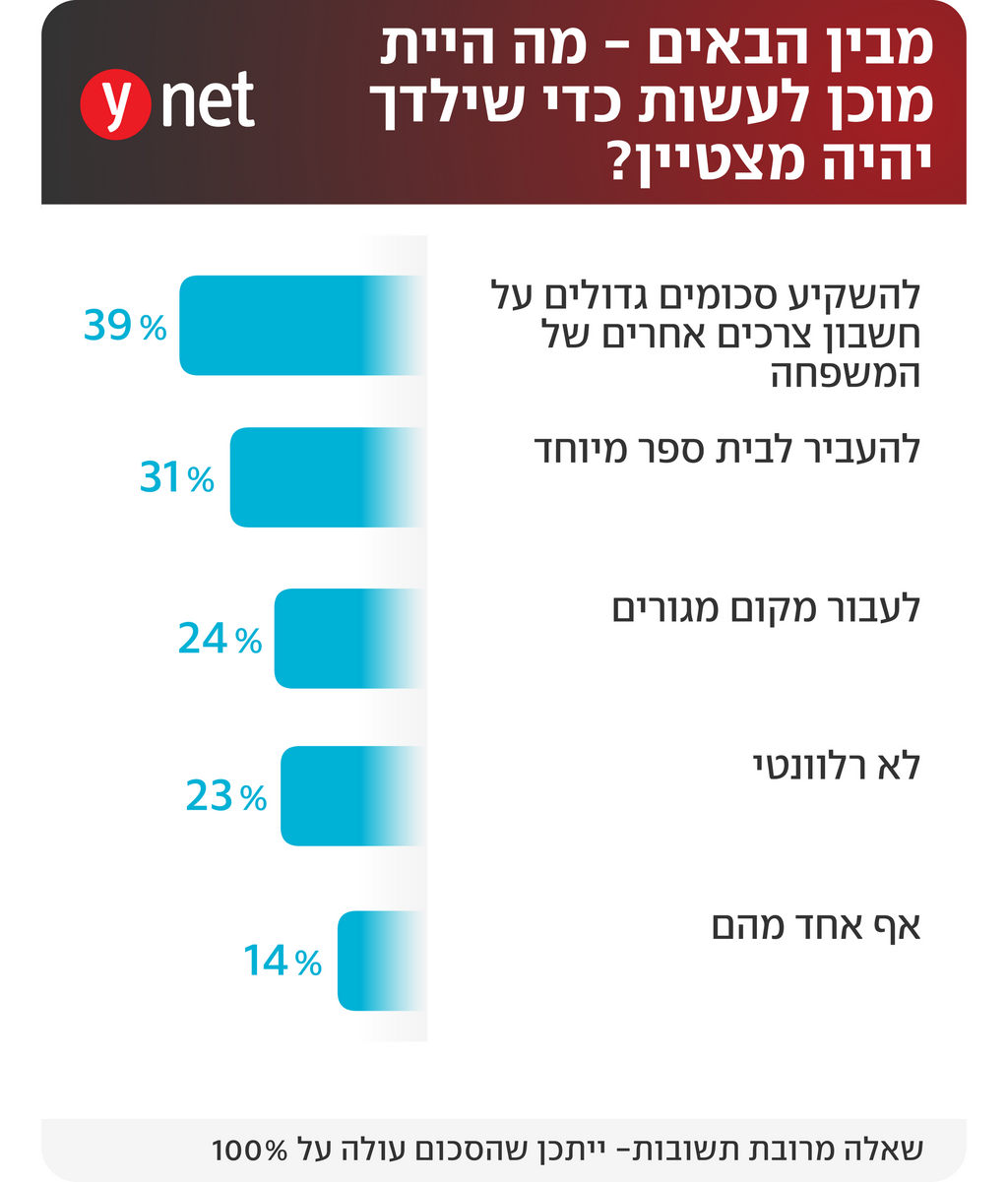 *הסקר נערך ב־18 במארס 2026, בקרב 500 משיבים יהודים מעל גיל 18 , על ידי מכון מדגם לקראת שבוע המצוינות של קרן טראמפ לחינוך שיתקיים בשבוע הבא, 1.5-26.4 . טעות הדגימה המרבית - 4.4%
