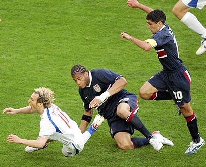 צ'כיה, המדורגת שנייה בדירוג הנבחרות של פיפ"א, שיחקה נהדר ולא הותירה סיכוי לאמריקנים השאפתנים. פציעתו של כובש השער הראשון, יאן קולר, אמנם העיבה במקצת על שמחת הניצחון, אולם חברו הצעיר מדורטמונד, תומאש רוסיצקי (שעבר הקיץ לארסנל האנגלית), הראה כי אפשר לבנות עליו עם שני שערים יפהפיים.