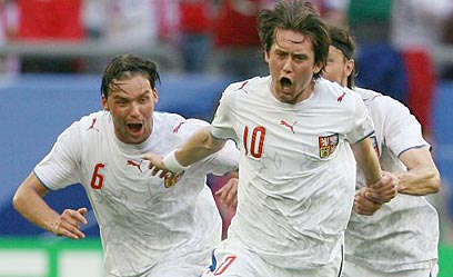 נבחרת צ'כיה חזרה הערב (ב') לזירה העולמית אחרי העדרות של 16 שנה והדגימה לכולנו עד כמה היתה היא חסרה פה בין הטובות בקבוצות הכדורגל בתבל. עד כמה שזה נשמע מוזר, משחק הפתיחה של הצ'כים בטורניר הנוכחי מול ארצות הברית בגלזנקירשן היה הראשון בקריירה של פאבל נדבד במסגרת גביע העולם. היתה זו בכורה מרשימה למדי של הקשר בן ה-33, שרק לאחרונה שב ללבוש את המדים הלאומיים. נדבד וחבריו הציגו את הכדורגל הטוב ביותר במונדיאל עד כה וזכו לניצחון 0:3.