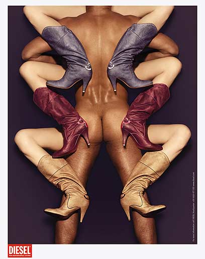 עירום גברי שדומה למודל הנשי. מתוך הקמפיין של "דיזל", חורף 2005