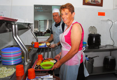 בת אהרון עלתה לישראל מארגנטינה לפני 35 שנה, הקימה משפחה ועשתה לפרנסתה, ולפני כשלוש שנים מצאה עצמה ללא תעסוקה. "לא ידעתי מה לעשות עם כל-כך הרבה זמן פנוי", היא נזכרת, "והחלטתי שאתנדב בתחום כלשהו שיתאים לי. הגעתי לכאן והמקום מצא חן בעיניי ממבט ראשון. כשהתחלתי להתנדב לא היה לי מושג איך תיראה הפעילות שלי. לפני שעברנו למקום הנוכחי המסעדה פעלה במקום קטן וצר בעיר העתיקה. זה היה מקום צפוף עם אווירה משפחתית. עטפו אותי בחום ומאוד נכנסתי לזה. זה עושה לי טוב על הלב", היא מכריזה בחיוך.
