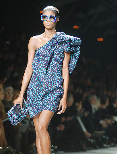 בפיסות מנומרות. בד מנומר חדש, שיצר אלבר אלבז ל"לנוון", נראה כמו חברבורות שיצאו מפוקוס על רקע כחלחל, והוא מפאר שמלת כתף אחת בקולקציה שלו לקיץ הקרוב. זה נראה פסיכי ומקסים בעת ובעונה אחת. הסלבס כבר עומדות בתור כדי להצטלם בשמלה הזאת.