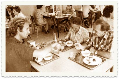 3. רפי, אשתו תמר ובנם דני בחדר האוכל בקיבוץ העוגן.