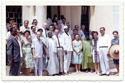 4. בשנת 1961 נקרא רפי להיות שגריר במאלי שבאפריקה. בתצלום: סגל שגרירות ישראל בעיר סגו עם נשיא מאלי דאז, מודיבו קייטה, לידו רפי.