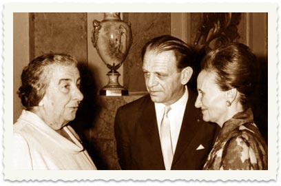 15. לאחר השליחות בקמבודיה התמנה רפי כשגריר ישראל ברומניה. בתצלום: תמר ורפי בפגישה עם גולדה מאיר, ראש ממשלת ישראל, בעת ביקורה ברומניה בשנת 1973.