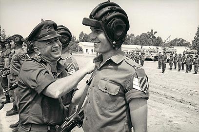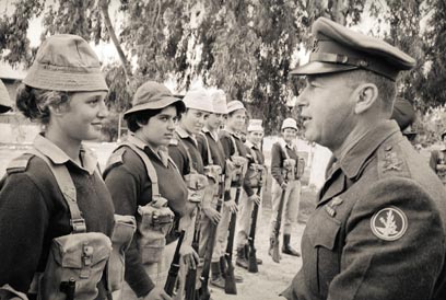 הרמטכ"ל משוחח עם חניכות קורס בפיקוד ההדרכה, פברואר 1964, צילום: מיכאל אסטל